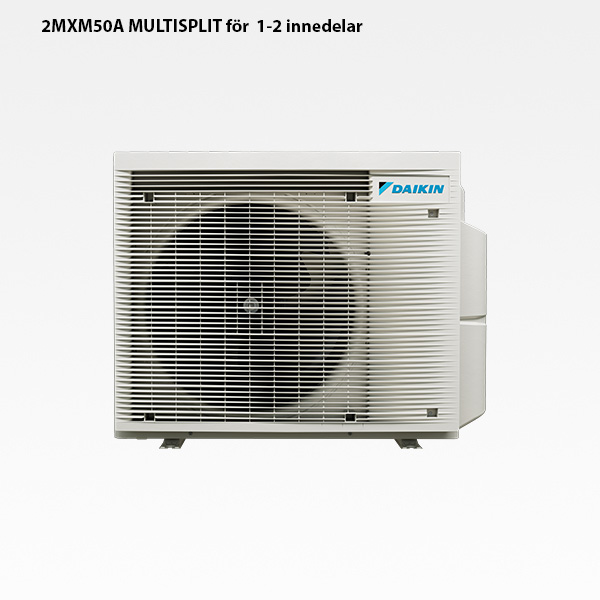 2MXM50A Daikin multi-split utomhusdel som kan ansluta 1 – 2 inomhusdelar i olika konfigurationer. Den nya utomhusdelen är mycket tystgående och extremt effektiv.