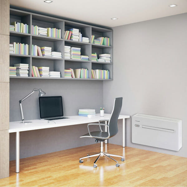 Airwell XDO 012-H11 kan placeras stående på golv eller placeras med konsoller uppe på vägg. Utblåset kan vid behov flyttas från ovansidan till övre framsidan av aggregatet. En inbyggd termostat styr aggregatets kompressor av och på vid önskad temperatur, aggregatet har två fläkthastigheter.