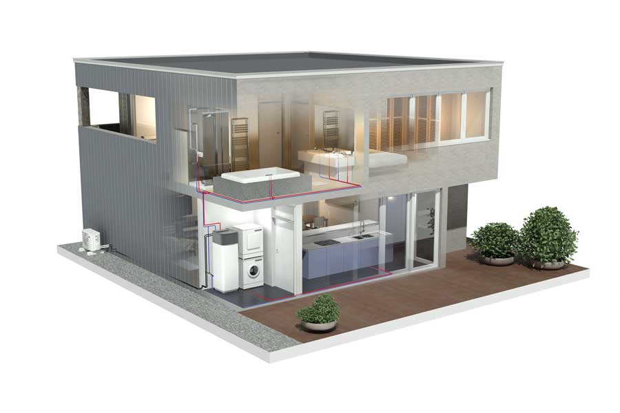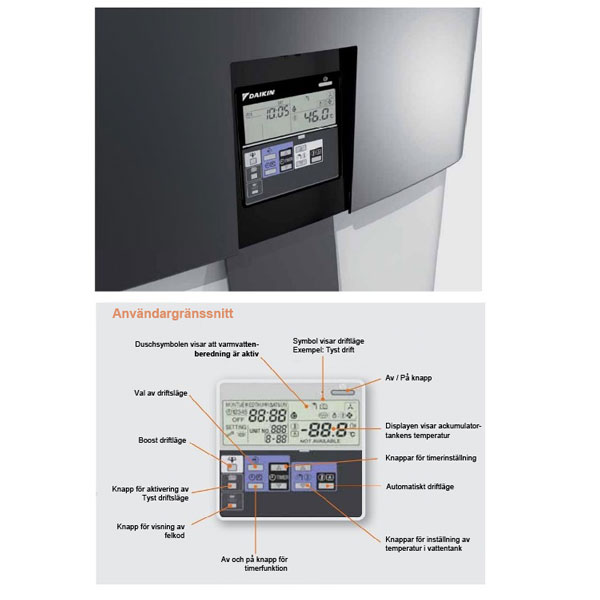 Smarta inställningar ger dig maximal komfort och med den underhållsfria varmvattenberedaren minimeras service behovet. Den inbyggda elpatronen stödjer kompressorn när energin i utomhusluften inte räcker till.