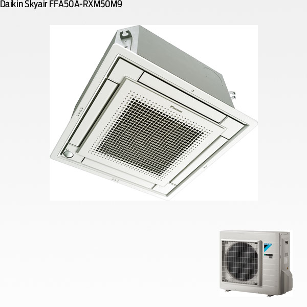 Daikin FFA50A är en snyggt designad takkassett som passar in i undertakets 600×600 mm modul. Den ligger helt plant integrerad med undertaket och bygger enbart 8 mm.