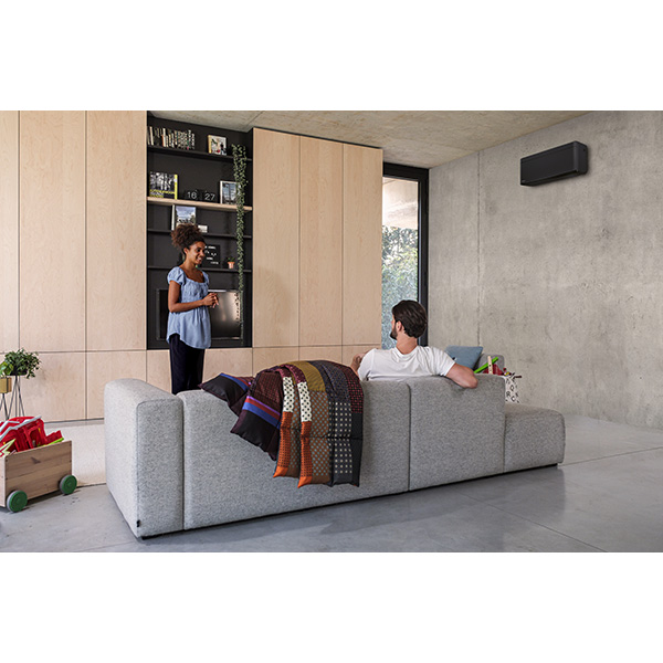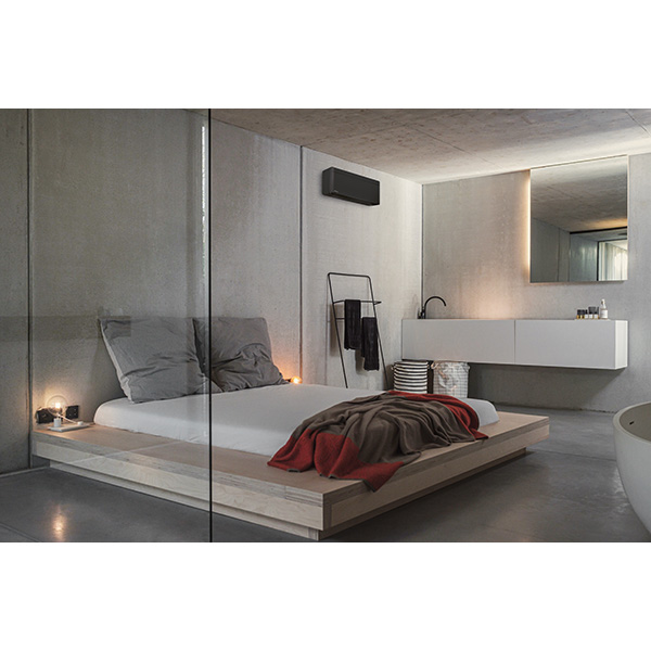 Daikin Stylish XTH30 Svart, designmodellen med sober frontpanel och matt finish. Kompakt och funktionell design som är lämplig för alla utrymmen där man ställer krav på inredningsdetaljer.