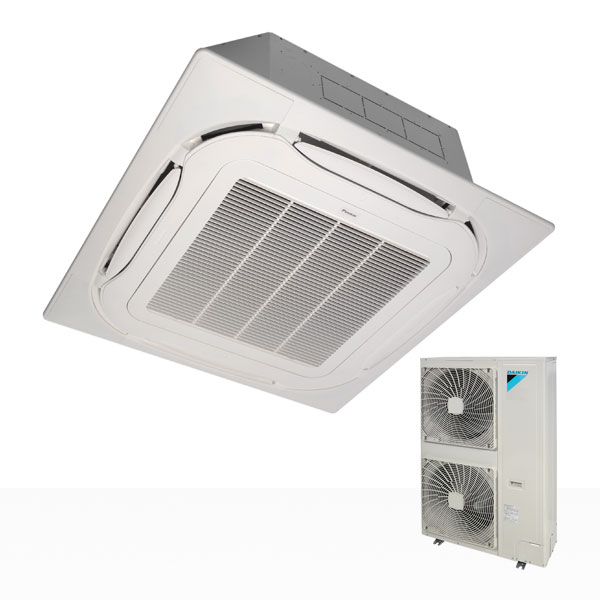 FCQG140F Daikin rundblåsande takkassett med 360° luftutsläpp ger jämnt luftflöde och konstant temperatur.