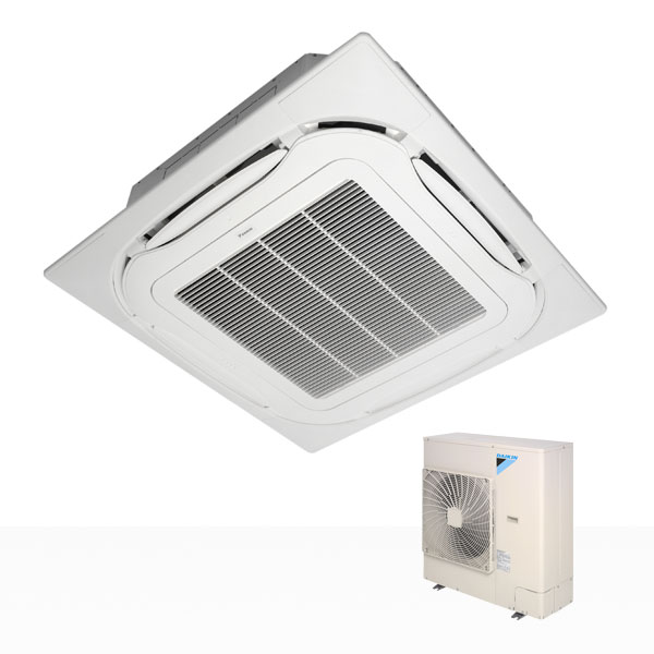 FCQG71F Daikin rundblåsande takkassett med 360° luftutsläpp ger jämnt luftflöde och konstant temperatur.