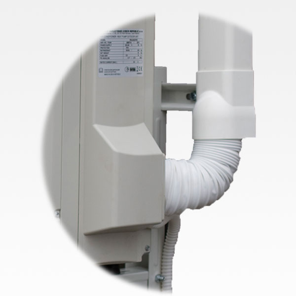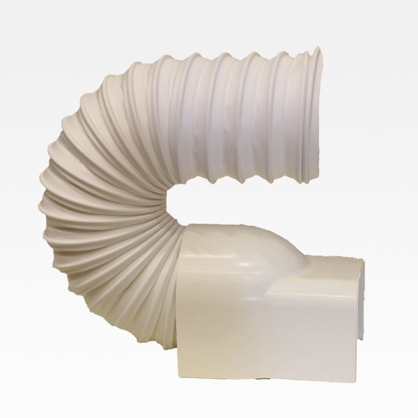 Flexibelt kanalavslut ClimaLine 80 omsluter sista rördragningen mellan väggkanalen och aggregatets anslutning.