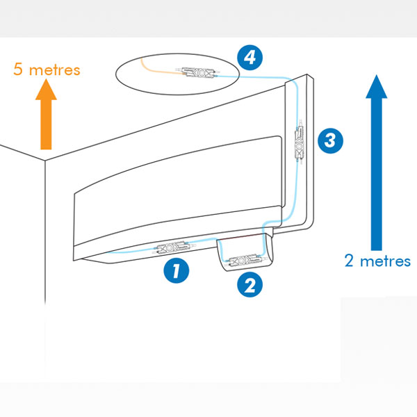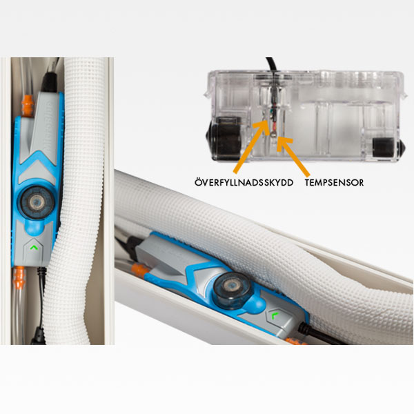 MicroBlue är en liten effektiv kondensvattenpump som passar till de flesta inomhusdelar för luftkonditionering och luftvärmepumpar. Den passar till de flesta inomhusdelar och kan lätt gömmas undan inuti kanallisten eller inuti inomhusdelens rörutrymme.