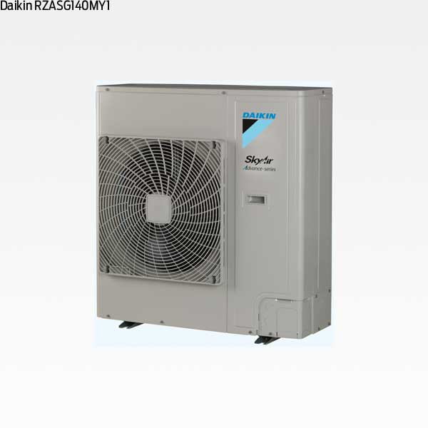 Sky Air Advance RZASG140MY1 utomhusdel med högeffektiva och miljövänliga köldmediet R32 – en modell från Daikin som levererar en nominell kylkapacitet på 12.1 kW.