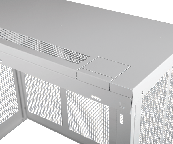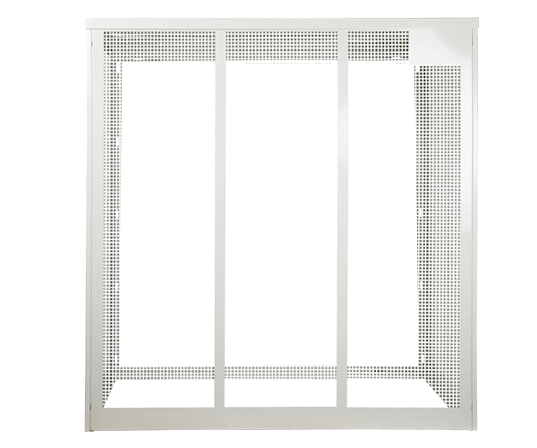 ClimaLines Skyddsbur Medium för utedelen till kylaggregat och luftvärmepumpar har en robust men ändå lätt konstruktion i vit lackerat (RAL 9002) eloxerat stål. Skyddsburen är lätt att bygga ihop och montera, den har en servicelucka som standard och förberedda uttag för genomföring av rörkanaler.