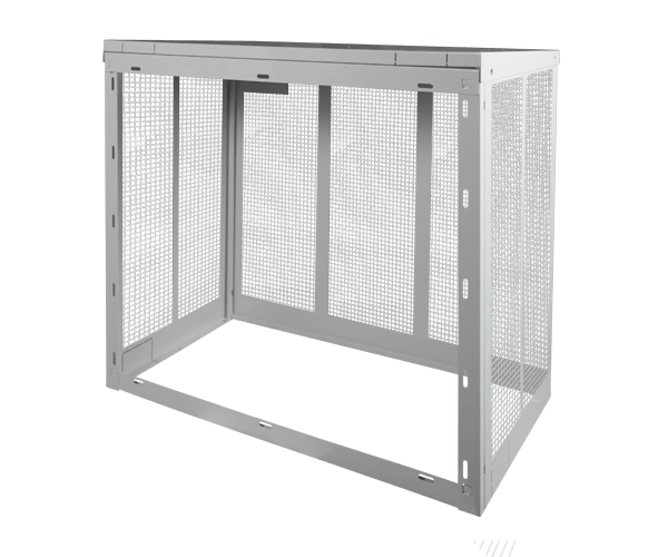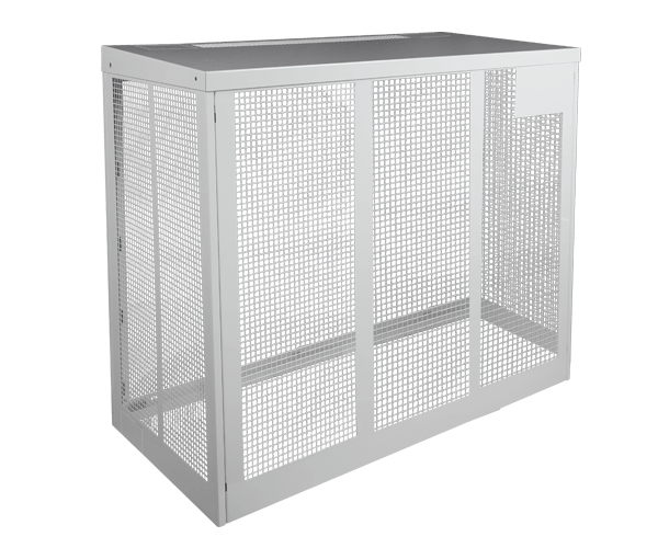 ClimaLines Small skyddbur för utedelen till kylaggregat och luftvärmepumpar har en robust men ändå lätt konstruktion i vit lackerat (RAL 9002) eloxerat stål. Skyddsburen är lätt att bygga ihop och montera, den har en servicelucka som standard och förberedda uttag för genomföring av rörkanaler.