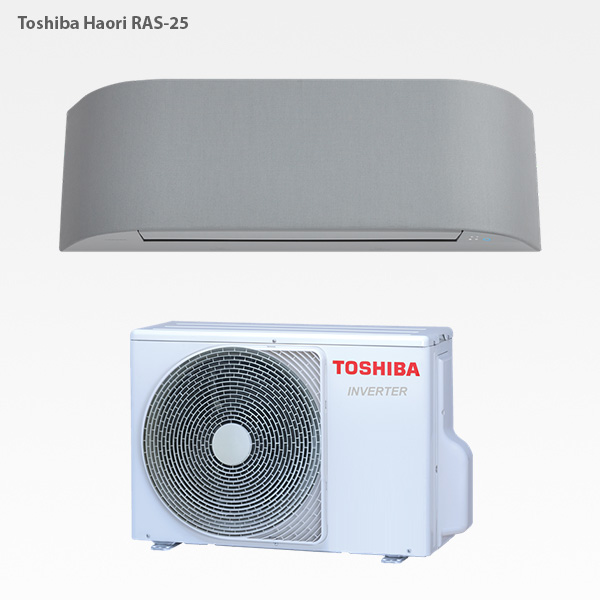 En Toshiba Haori 25 består av en innedel RAS-25J2AVSG-ND1 med trådlös fjärrkontroll och en utedel RAS-25KVRG-ND. 5 års produktgaranti erhålls godkänd garantiregistrering på Toshibas hemsida