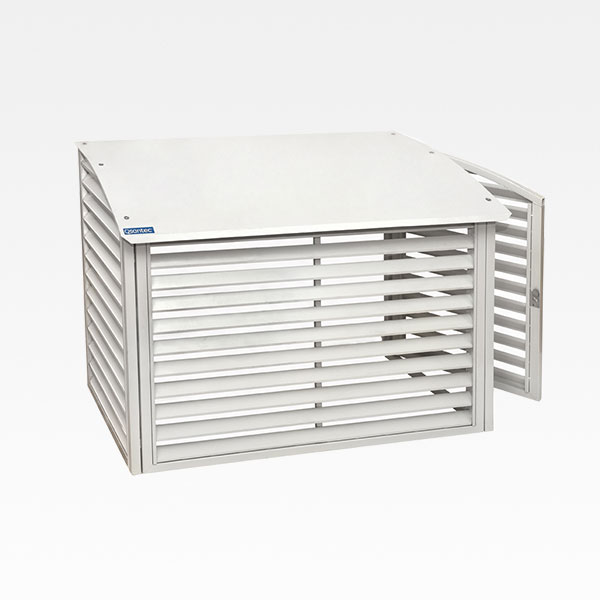 VPS90 värmepumpsskydd i plåt från QsanTec passar perfekt till de flesta utomhusdelar.