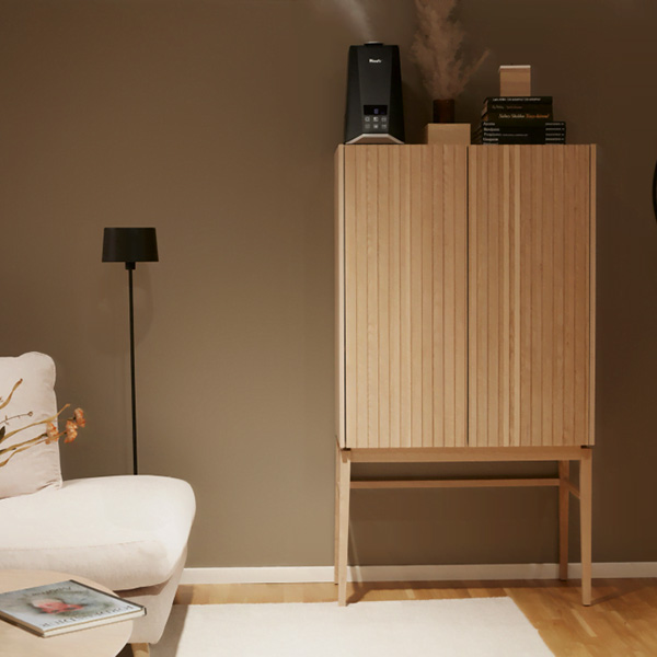 Woods WHU600 har en digital display som tydligt visar aktuell temperatur och relativ luftfuktighet. Inställningar ändras enkelt direkt på luftfuktarens manöverpanel eller med hjälp av den trådlösa fjärrkontrollen.